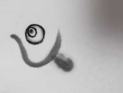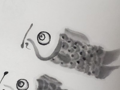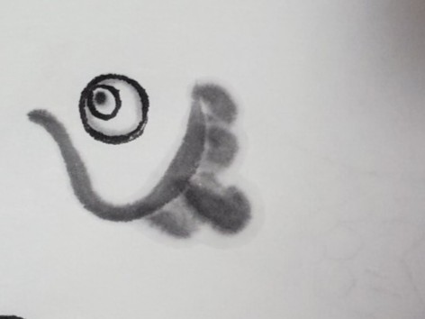 これを描く際に、実は、重ねて描いているのですが、紙と水の特性によって、ウロコとウロコの間が白くなっているのがわかるかと思います。